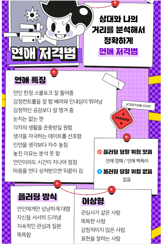 연애 프로파일 테스트는 최근 인기 있는 연애 검사 중 하나입니다. 이 검사는 심리학 원리를 기반으로 하며, 서로 다른 유형의 사람들이 서로를 이해하고 충돌할 가능성이 높은 부분을 파악합니다. 이를 통해 나와 잘 맞는 연인을 찾을 수 있습니다.