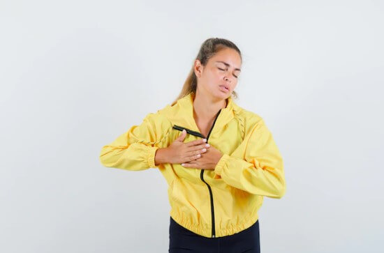 가슴, 특히 왼쪽 유방 밑 근처에서 박동을 느낄 수 있습니다.