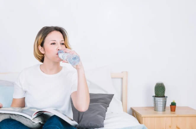 미네랄이 풍부한 물을 마시고 자면 다음날 몸이 가볍다.