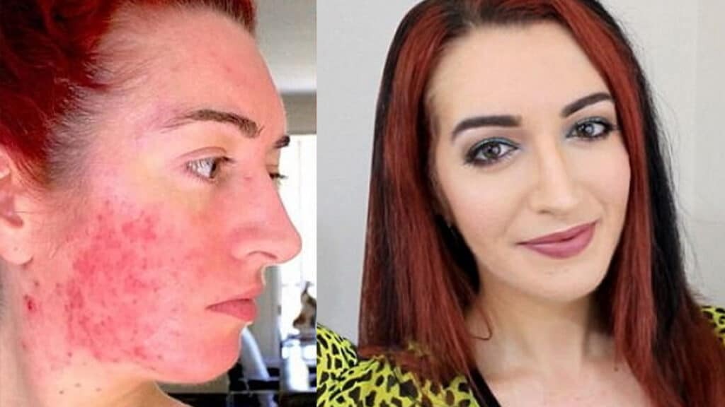 그녀는 맨 처음 채식을 시작하였고 이후 설탕과 기름도 줄이기로 했습니다. 그 결과가 불긋불긋 한 여드름 피부에서 점점 건강한 피부를 되찾게 되었습니다.